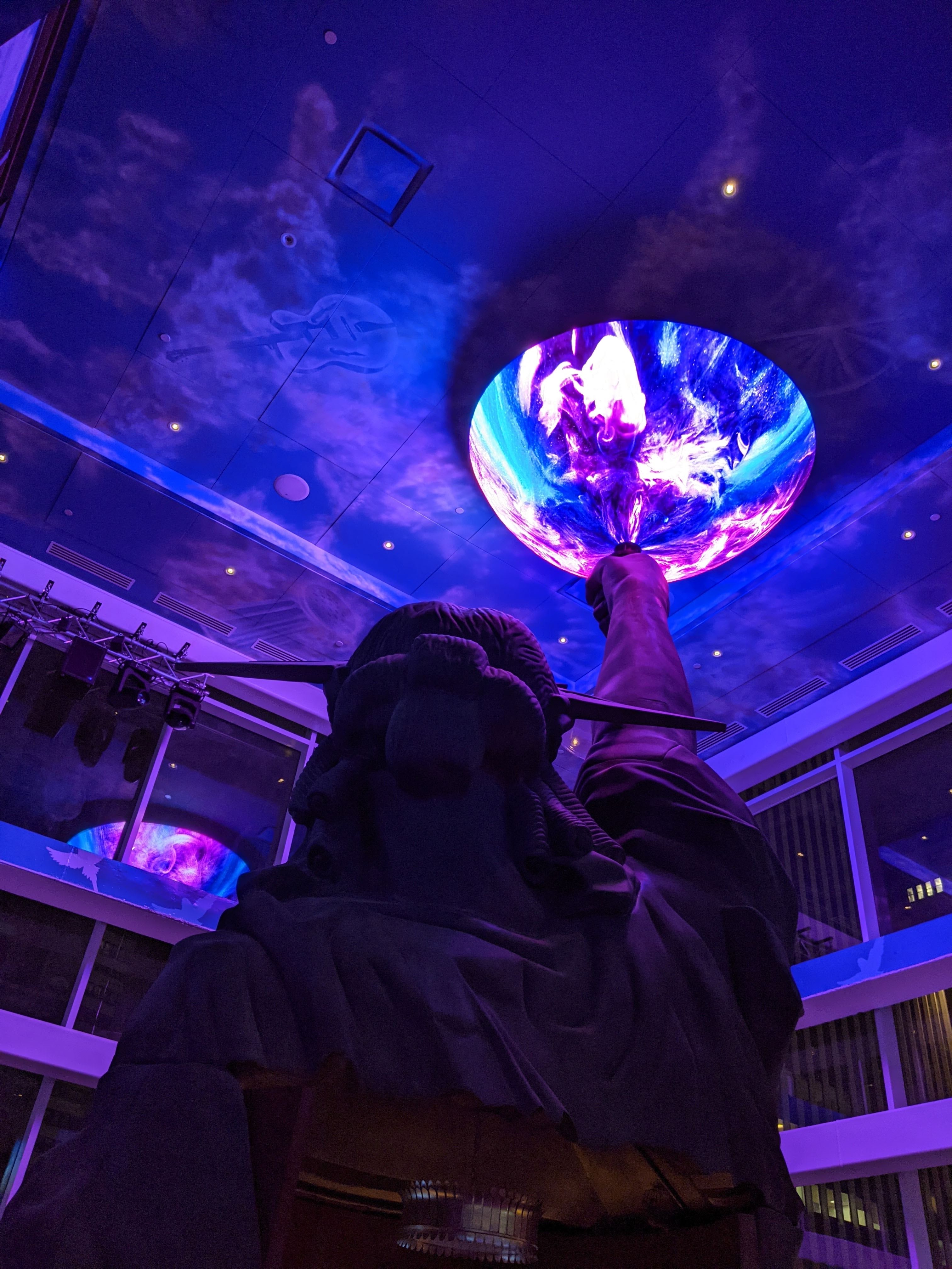 But what really captures your attention is the gigantic version of Miss Liberty, visible from the street, with her ever-changing margarita "torch".